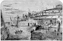 This article incorporates text from this source, which is in the public domain. - ↑ Mott, Edward Harold (1899). "Administration of James Bowen". Between the Ocean and the Lakes: The Story of Erie. Collins. pp. 52–66.