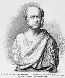 Bunning was born in London on 6 October 1802. He was trained in the office of his father, the surveyor Daniel James Bunning, from the age of thirteen. He was then articled to George Smith.[1] He exhibited at the Royal Academy between 1819 and 1848., giving his address as Bernard Street between 1819 and 1823, and Guilford Street after 1832.[2] He was a fellow of the Institute of British Architects, and of the Society of Antiquaries.[3]
