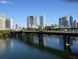 The bridge viewed from the southwest, from the nearby Lamar Boulevard Bridge