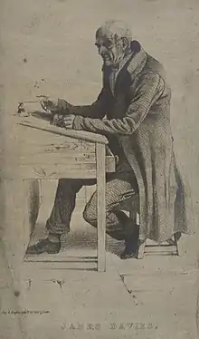 James Davies (1765 - 1849) was a Welsh schoolmaster. His parents, Edward and Judith Davies, were Monmouthshire farmers. As a boy he attended Llangattock Lingoed school, before entering employment as a Lawyer's assistant. He did not remain the position for long, instead taking up weaving as a profession. In 1796 he married, but it was an unhappy marriage, and he left to become a pedlar for a while. After his wife's death he moved to Usk, and for a few years earned a living as a shopkeeper. In 1812 he took up a schoolmaster position at Usk School, before in 1815 opening a new school at Devauden. He is described as being a stern disciplinarian, but was also a generous man, and provided Bibles and other books at his own expense. He held strong religious beliefs, and it would seem thus, the school-house eventually became a 'chapel-of-ease' (where he served as a clerk), and a new school (the 'James Davies School') was built.