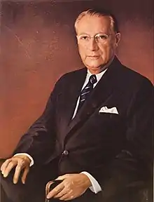 James F. Donovan (July 26, 1902 – June 7, 1979) was an American businessman and industrialist. Donovan served as co-trustee of the F.H Prince Holding Company which oversaw multiple corporations.[1][2][3] Donovan was chairman of the Union Stock Yard and Transit Company, often called “The Chicago Stock Yards”.[1][4] During his career, he administered the Central Manufacturing's 11 industrial parks in Chicago and industrial parks in Phoenix and Tempe, AZ and Sacramento, CA. He also served in a trustee role at Bentley University.[5][6]
