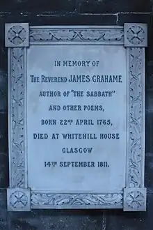Rev James Grahame (22 April 1765 – 14 September 1811) was a Scottish poet. His best-known poem, The Sabbath, combines devotional feeling with vivid description of Scottish scenery.[1]