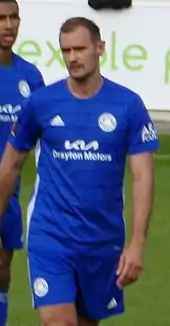 Ahead of the 2014–15 season the club implemented new a playing style and match tactics, and Hanson stated he was looking forward to showing that he was able to adapt to it.[54] In August 2014, after scoring five goals in the season to date, Hanson entered the club's top ten all-time scorer list.[55] In September 2014 it was announced that Hanson was suffering from a thigh injury, and could miss up to 5 matches.[56] In December 2014, following his return from injury, Hanson was kept out of the starting line-up by Jon Stead and Billy Clarke.[57] In January 2015 Hanson praised Stead,[58] while later that month he was himself praised by ex-Bantam striker Dean Windass.[59] Following Bradford City's shock victory in the FA Cup over Chelsea, Hanson was praised by their captain John Terry.[60] Hanson later described the Chelsea match as his favourite game for Bradford City.[61][62]