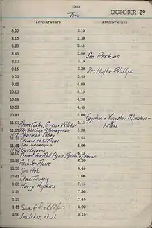 Daily appointment log for FDR showing appointment to present medal to 8 Airmail Flyers