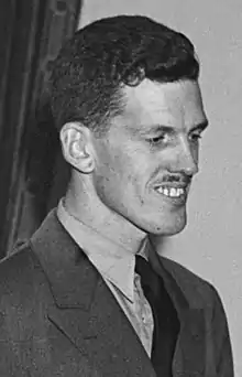 Cropped image of Carmichael waiting to receive Airmail Flyers' Medal of Honor from FDR.