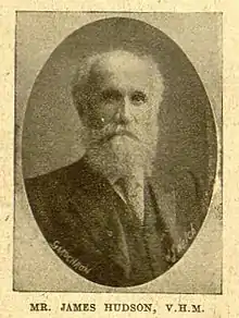 The youngest son of Samuel Hudson, head gardener at Horsted Place, James studied at Doctor Saunder's grammar school, Uckfield and then trained in land survey and estate work in 1861. He chose to work with his father before becoming a foreman at Deepdene, Dorking. He topped the Royal Horticultural Society examination in 1869 with full marks, the first such case in the history of the examinations. He became a head gardener at Champion Hill and then at Gunnersbury House owned by H.J.Atkinson. He then worked for Leopold de Rothschild who purchased the estate. He served as an examiner for the RHS and was awarded the Victoria Medal of Honour in Horticulture as soon as it was instituted. He retired in 1919.[1]