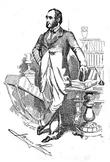 Hume was born in Montrose, Angus, the third of six children of namesake father James Hume (1779-1813, brother of Joseph Hume) and Marianne Grant (1777-1854). He studied law at the Inner Temple and was called to the bar on 27 January 1832. Arriving in Calcutta on 29 April 1839, he became involved in judicial work. He was an advocate at the Supreme Court at Calcutta from June 15, 1839 and wrote extensively in the newspapers before starting a weekly newspaper The Eastern Star, first published on January 5, 1840. In 1841 he took over the Daily Calcutta Intelligencer and Commercial Advertiser and renamed it as the Calcutta Star, a daily newspaper meant for the British citizens of Calcutta. Hume later became the Police Magistrate of Calcutta and served as Justice of the Peace. He served as an editor of the India Sporting Review between 1845 and 1859 (formerly called the Bengal Sporting Magazine) of which he was also the proprietor. Hume wrote numerous essays under the pen-names of "Idler" in the Calcutta Star and "Abel East" in the India Sporting Review. He also served as an honorary secretary for the Asiatic Society and of the Agri-Horticultural Society of India. He was also a director of the Inland Steam Navigation Company. Hume saw the value of archives, and established a general record office at Fort William. In 1849 he hosted his cousin Allan Octavian Hume on arrival at Calcutta. It was around the same time that there was a British outcry against proposed reforms that made British and Indian citizens common before the law. James Hume was among the few British people in favour of this reform.[1] The Indian Sporting Review terminated with the 1857 uprising. Hume clashed with other political commentators of his time, notably William Thackeray. Hume wrote in 1843 that "Whiggism has become so contemptible, that Radicalism is the only refuge for a reasonable man. Chartism and its five points must stand over for the present, and it will be a long future before the five are carried." He was a keen proponent of trade, noting with positivity, the value of opium trade for England and the losses in payments to middle-men in the movement of indentured Indian labour into Mauritius. He resigned as editor of the Calcutta Star on April 29, 1846.[2]