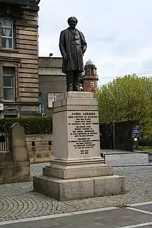 A statue to his memory, designed by John Mossman, stands near the cathedral in front of Glasgow Royal Infirmary, of which both he and his brother Lachlan were major benefactors.[1] He was also portrayed by Sir Daniel Macnee.[8]