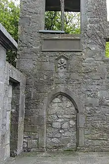 In 1844, the house in Lombard Street was demolished, and the inscribed stones were retained by a committee. They were displayed at the Great Industrial Exhibition in Dublin in 1853. In 1854 Galway town commissioners allowed the committee to set them in a specially constructed imitation house-front set in the Market Street boundary wall of St. Nicholas' churchyard, near the site of the demolished house. A new inscription states: "This Ancient Memorial Of The Stern And Unbending Justice Of The Chief Magistrate Of This City James Lynch Fitzstephen Elected Mayor A.D. 1493 Who Condemned And Executed His Own Guilty Son Walter On This Spot Has Been Restored To This Its Ancient Site A.D. 1854". Concrete supports were added in 1978.[4]