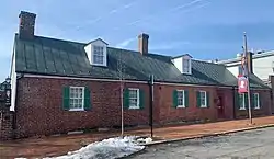 The Monroe Museum is located in central Fredericksburg, on the west side of Charles Street, between William and George Streets. It is housed in a two-part building that is roughly L-shaped. The older portion is a long 1-1/2 story brick structure, with a gabled roof, built in 1758. To this is attached a larger 1-1/2 story square brick building dating to 1964, when the museum and library were organized. The addition houses Monroe memorabilia, and a small library containing volumes similar to those that might have been in Monroe's library. The museum also houses a collection of furnishings and other artifacts belonging to the Monroes, although most date to the 19th century.[4]