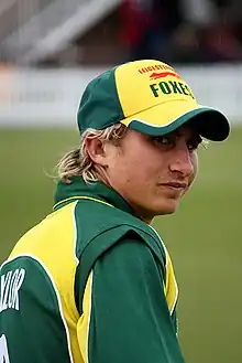 Taylor was first selected for the England Under-19 cricket team whilst at Worcestershire as part of the performance program in September 2007 to play one-day matches against second XI teams.[75] Taylor top-scored with 65 not out in a victory for England against Gloucestershire second XI. He was then selected in a tri-nations U-19 series against Pakistan and Sri Lanka.[76] England missed out on reaching the final, which was eventually won by Pakistan, Taylor hit his highest score of 43 against Sri Lanka in an English defeat.[77] In February 2008 Taylor was selected to participate in the 2008 ICC Under-19 Cricket World Cup, held in Malaysia.[78] Despite a poor campaign by England, Taylor scored 200 runs in the series with a top score of 52 not out against Ireland U-19 in a 10-wicket victory, opening with Billy Godleman.[79] In July 2008, Taylor was chosen again to face New Zealand U-19 in five one day matches.[80] As well as being chosen to play in the 2009 England U-19 tour of South Africa.[81] England played two Youth Test matches, five one-day matches and two T20 Youth matches. England were defeated in all three genres of the game. Taylor did however secure a win for England in the third ODI as he scored 85 to claw England a way back into the series at 12.[82][83]