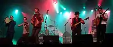 Renowned for their live performances,[6] Jamie Smith's Mabon took on many world tours and performed well over 1,000 gigs in four continents by 2018 alone.[2] Notable festivals the group have performed at include: Festival Interceltique de Lorient (2010, 2012, 2013, 2014, 2016, 2018); Celtic Connections (2011, 2015, 2019); the Rain Forest World Music Festival in Borneo (being the first Welsh band to perform here);[2] WOMAD UK (2011 and 2017);[7] WOMAD Australia (2019); WOMAD New Zealand;[2] Musicport Festival (2017);[8] Cambridge Folk Festival (2013 and 2017);[9][10] Sidmouth Folkweek (2017);[11] National Eisteddfod of Wales (2019); Fairport's Cropredy Convention (2011) and Cwlwm Celtaidd (2016).[12]