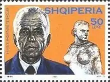 Janaq Paço (14 March 1914,[2] Konitsa, Kingdom of Greece – 11 July 1991, Tirana, Albania) was one of the best known Albanian sculptors of the 20th century. Some of his prominent works include the monuments of Skanderbeg in Kruja, Tirana, and Pristina, Kosovo (reproduced post-mortem), as well as The Gladiators.[2]