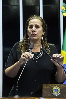 Jandira Feghali (born 17 May 1957) is a physician, unionist and politician member of the Communist Party of Brazil (PCdoB).[1]
