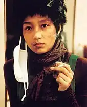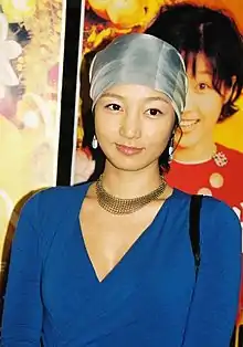 Jang's first starring role was in the 2001 psychological horror film Sorum, in which she was cast against type as Sun-yeong, a chain smoking abused wife. The part required her to look badly bruised and disheveled, and she found the regimen of three packets of cigarettes per day to be quite grueling, despite being a smoker herself.[10] Both the film and Jang's performance received praise from critics, with Peter Y. Paik of The Film Journal commenting, "[Jang] Jin-young is utterly convincing in her portrayal of a battered wife, conveying both vulnerability and grit."[11] Jang won Best New Actress at the Busan Film Critics Awards,[12] Best Actress at the Blue Dragon Film Awards.[13]