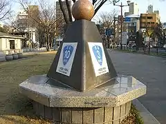 Ending milestone of Route 3, Route 10 and Route 225 at the central park in the city of Kagoshima