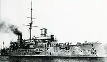 ![]() Kasuga at Sasebo after the Battle of Tsushima, May 1905 | |