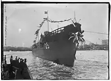 Launching of Uzuki (then known as Destroyer No. 25) on 15 October 1925 at Ishikawajima Shipyard, Tokyo, Japan.