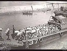 Japanese troops board a barge taking them out to a RAN vessel bound for Bougainville Island following their surrender