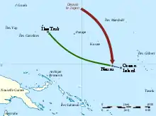 On 11 September, the boat which was to be used to deport the remaining Nauruans arrived off the coast of the island, only to be destroyed by a torpedo from an American submarine. This prevented the Japanese from completing their plan of removing the entire Nauruan population and allowing only uprooted people without specific land rights to remain on the island.[25]