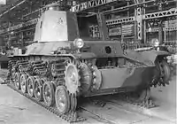 One prototype variant was the Type 98 Ta-Se, an anti-aircraft tank that mounted a 20 mm AA gun.[47] Another variant known as the Type 2 Ke-To light tank began production in 1944. It mounted an improved Type 1 37 mm tank gun in an enlarged turret, which gave the tank "slightly better performance".[45] However, only 34 tanks were completed by the end of the war.[48] No Type 2 Ke-To light tanks are known to have engaged in combat prior to Japan's surrender.[49]
