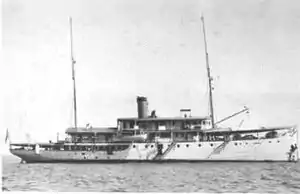 She was launched in 1918 at the Gusto Shipyard in Schiedam[2] for the benefit of the Gouvernementsmarine and named Gemma.[4] She was armed with a single 75 mm gun.[3][4] She was scuttled by Dutch forces at Surabaya on 2 March 1942[3][4] after the Japanese occupation of the Dutch East Indies. On 27 October 1942, she was refloated and repaired by the No. 102 Naval Construction and Repair Department at Surabaya, Java.[5] On 28 January 1943, her repairs were completed and on 1 August 1943, she was designated as a special transport ship, and assigned to the Sasebo Naval District.[4] On 1 March 1944, she arrived at Surabaya as part of the Southern Expeditionary Fleet.[4] She spent most of the war ferrying supplies and men and assisting disabled ships between ports in and around Indonesia (Kota Bharu, Surabaya, Balikpapan, and Samarinda).[4] On 24 September 1944, she assisted the gunboat Nankai and the Hokkai Maru, disabled by enemy mines[6][7] laid by the submarine USS Bowfin 15 miles west of Sebuku Island at 03°37′S 116°25′E / 3.617°S 116.417°E / -3.617; 116.417.[8]