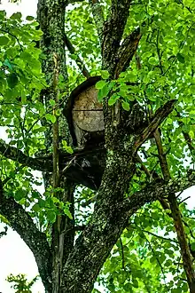 In old times, when daily life of local population was closely tied to the forest, Jara beehives were placed in the middle of the forest high up in a Linden tree to protect the beehives from bears and other wild animals. Jara beehives were also placed on the rocks, on around 1200 meters above sea level since the rocks were the safest place for Jara but the most difficult for harvesting;[4] With the development of agriculture and weakening links with the forest, the locals began placing the Jara beehives in the gardens near their homes. This has enabled them to collect swarms in an easier manner and increase the apiary and its productivity. It is where Jara beehives can be mostly found these days. Beekeepers, living in high Adjarian mountains, protect the Jara beehives from severe winter conditions through placing them in specially built wooden shelters.