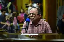 Jaroslav Uhlíř (born 14 September 1945) is a Czech composer and pianist from Prague.[1] In the early 1970s, he was a member of the rock bands Providence and Faraon, together with bassist Karel Šíp. Later, he composed music for Czechoslovak National Radio, where he met Zdeněk Svěrák.[2] With him, Uhlíř released many albums of children's music. He also hosted the television show Hitšaráda and later Galašaráda, where he collaborated with Šíp.[3] In the 1980s, Uhlíř formed the parody group Triky a pověry with Šíp and Petra Janů. Between 1988 and 2017, Uhlíř worked with Zdeněk Svěrák on the children's music television show Hodina zpěvu, which spawned a number of operettas, such as O Budulínkovi and O dvanácti měsícčkách. Three of these became the basis of the Jan Svěrák film Three Brothers in 2014.
