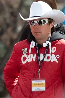 Jason Paul Myslicki (born December 14, 1977)[1] is a Canadian nordic combined skier who has competed since 1999. Competing in two Winter Olympics, he earned his best finish of 41st in both the 7.5 km sprint and 15 km individual events at Turin in 2006.