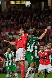 Deemed surplus to requirements at Real Madrid, García signed for S.L. Benfica in Portugal on 21 July 2009 on a five-year contract for a €7 million transfer fee.[11] An undisputed starter throughout his first season he also scored three goals, most notably through a header in the last minute for the game's only goal against Associação Naval 1º de Maio at home,[12] as the club clung onto the top position on 9 November and eventually won the Primeira Liga.[13]