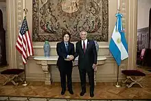 The inauguration of Milei and Villarruel as Argentina's president and vice-president took place on 10 December 2023. In his address to the nation, Milei warned the country of an economic shock.[121][122]
