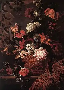 Jean-Baptiste Monnoyer[1] (12 January 1636 – 20 February 1699) was a Franco-Flemish painter who specialised in flower pieces. He was attached to the Gobelins tapestry workshops and the Beauvais tapestry workshops, too, where he produced cartoons of fruit and flowers for the tapestry-weavers, and at Beauvais was one of three painters[2] who collaborated to produce cartoons for the suite The Emperor of China.