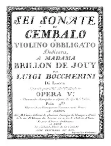 - ↑ Rudolf Rasch, Understanding Boccherini's Manuscripts, Newcastle upon Tyne, Cambridge Scholars Publishing, 2014, p. 3 (ISBN 1443856630, OCLC 880243613