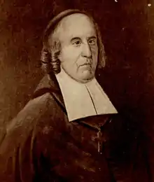 If Saint-Vallier presented Jansenist ideas, it was in certain aspects of his writing and in his austerity and deep orthodoxy, but he was certainly not a Jansenist. In the beginning of the 18th century the Bishop wrote 3 books; the Ritual, the Catechism and the ‘Statuts et ordonnances’. Because of his quarrels with the Jesuits, the Superior of the order decided to attack Saint-Vallier's authority by writing a long critic of those three books seeing them as a "lapse into Arianism, Pelagianism, Jansenism, Lutheranism, and Calvinism".[1] Father Bouvart based his accusations on different passages of the works of the Bishop, for example this extract from the Catechism.[13]