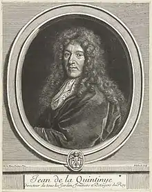 Jean-Baptiste de La Quintinie (1 March 1626 – 11 November 1688) was a French lawyer, gardener and agronomist who served under Louis XIV. Named director of the royal fruit and vegetable gardens by the king in 1670, he created between 1678 and 1683 the Potager du roi ("King's vegetable garden") near the Palace of Versailles.[1]