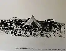 Between 1876 and 1881 nearly 5,000 Sioux and their chief Sitting Bull took refuge in the Wood Mountain region after the Battle of the Little Big Horn and traded at his post. By 1879 the Sioux were destitute because the buffalo had disappeared from the area.[4] Légaré spent a great deal of effort and supplies to feed the starving Sioux. Since the U.S. government offered amnesty and supplies Légaré at the request of L.N.F. Crozier (North-West Mounted Police) persuaded them to return to the United States. He accompanied Sitting Bull to Fort Buford in 1881.[5]