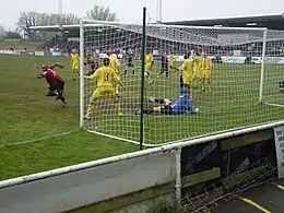 Sigere (left) wheels away after scoring the goal that clinched the 2007–08 Conference South title for Lewes.