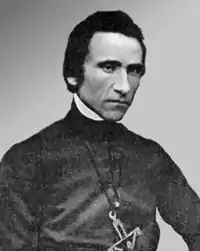 Jean-Nicolas Laverlochère (December 6, 1812 in St. Georges d'Espérance, Grenoble, France October 4, 1884 in Témiscaming, Quebec) was a French missionary in Canada. He began his religious life as a lay brother in the Congregation of the Oblates, but feeling called to evangelize the natives of Canada, he was allowed to study for the priesthood, and was ordained on May 5, 1844 at L'Acadie, near Montreal. He was a missionary in the Saguenay district from 1844 to 1847, at Abitibi, Moose Factory, and other posts on Hudson Bay from 1847 to 1863, at Plattsburgh, New York from 1863 to 1868, and on Lake Timiskaming from 1868 to his death in 1884. He laboured for the conversion of the native tribes. His reputation as a zealous missionary spread throughout Catholic Europe to such an extent that he was ultimately recognized as the Apostle of Hudson Bay. A stroke of palsy interrupted his labours in the course of 1851. He died in 1884 and is buried in the Catholic cemetery of Fort Témiscamingue.[1]
