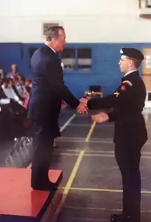 Back in Canada, he went to serve as adjutant general at the Quebec Command HQ. Promoted to the rank of colonel, he commanded the Quebec Western District[23][24] until his retirement in 1969. During those years, he commanded the Royal Army Cadet Camp of Farnham that closed in 1967.[25]