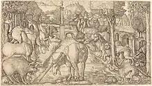 - ↑ By the 1561 edition the plates are becoming worn. Zerner (1994), p. 216. Becker says there are 24 in the series, unlike Zerner and Marqusee. The last print in the Boston series, linked below, is not included in Marqusee.