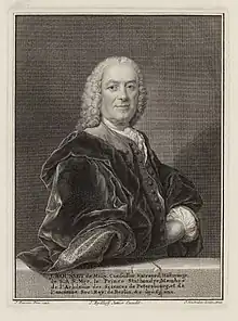 Jean Rousset de Missy (Laon, 26 August 1686–Uithoorn?, 13 August, 1762) was a French Huguenot writer, from early in life in the Netherlands. He was a renowned historian and author on international law and a prolific journalist. Born in Laon from Protestant parents (Jean Rousset and Rachel Cottin), he studied at the Collège du Plessis in Paris. After a conflict with his stepmother he joined the Dutch States Army during the War of the Spanish Succession and was present at the Battle of Malplaquet (1709). In 1724 (after having founded and led a school for aristocratic boys in The Hague), he started his activities as a professional journalist.[1]