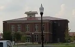 In 1871 the U.S. Army decided to build an edifice that would contain all the individual units that had spread all around Jeffersonville. Quartermaster General Montgomery C. Meigs designed the structure, which opened in 1874. Frederick Law Olmsted also helped design the facility, and much of his vision still exists with its brick structures and arched glass portals, but more of Meigs' vision won out. A 100-foot (30 m) tower was initially built as both watchtower and watertower, but was razed in 1900 to make the power plant into a two-story headquarters building.