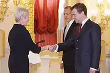 Jelica Kurjak presenting her letters of credence to Dmitry Medvedev