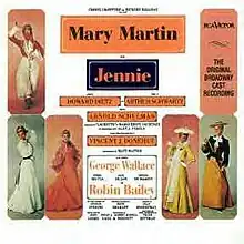 - ↑ Taubman, Howard. "Theater: Mary Martin Stars in 'Jennie' " The New York Times, October 13, 1963, p. 28 (archive abstract accessed August 10, 2016)