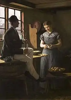 He held his first exhibit in 1881. His notable portraits include one of his parents (Old Folk, 1885), who both died shortly after it was exhibited, and one of his wife, which was shown in 1892.