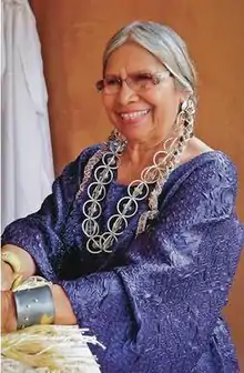 When she was not involved with the Indian Market, Ah-be-hill traveled widely presenting educational talks on Native fashions both throughout the United States and internationally.[18] She also curated events such as the Smithsonian Museum of Natural History traveling exhibit on Silver Horn, which toured the country in 1995 and included pieces from her collection of her great-uncle, Silver Horn's work.[5] In 2010, she served as a Native representative for the Caen Festival of Normandy, France.[19] In 2011, she was the recipient of the Povi’ka Award of the Santa Fe Indian Market in recognition of her leadership and support to Native American artists and communities.[20][21]