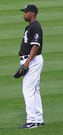 Jermaine Terrell Dye (born January 28, 1974) is an American former professional baseball right fielder. Dye played in Major League Baseball (MLB) for the Atlanta Braves (1996), Kansas City Royals (1997–2001), Oakland Athletics (2001–2004), and the Chicago White Sox (2005–2009).