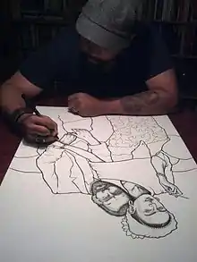 Jermaine Rogers born on October 14, 1972, in Houston, Texas, is an artist and designer known for his contributions to modern rock/pop poster art, often referred to as 'gigposter' art. He has also made significant contributions to serigraph and fine art production. Rogers emerged as a prominent figure in the Texas poster-art scene of the 1990s, alongside renowned artists such as Frank Kozik, Uncle Charlie, and Lindsey Kuhn. His work has garnered recognition and acclaim in the field of poster art and beyond.[1] Since 1995, Rogers has designed posters for a wide variety of musical acts, including Queens Of The Stone Age, David Bowie, Tool, Foo Fighters, Radiohead, Nine Inch Nails, Childish Gambino, The Cure, Run The Jewels, Public Enemy, Soundgarden, and many others.[2][3] His work is viewed as influential in the modern resurgence of the art form, "continuously crafting images that push boundaries, whether social, cultural, or aesthetic".[4] His work is cataloged among the permanent collections of the Rock And Roll Hall Of Fame in Cleveland, Ohio as well as the Experience Music Project in Seattle, Washington. His work has been featured in various media, including print, television, and feature film. Rogers currently resides in Houston, TX. USA.