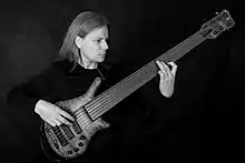 Thesseling began studying bass in 1988 at the ArtEZ School of Music in Enschede, Netherlands. Between 1992 and 1994, he was a member of Pestilence, with whom he recorded the jazz fusion-influenced album Spheres.[5] In 1995 Jeroen started to study microtonality, which resulted in two pieces: Hafnium — study in 72-tone equal temperament (1999) — and Argon — study in 18-tone equal temperament (2000). The period following, Arabic microtonal and contemporary classical music inspired him to focus primarily on fretless bass.[6] In 2005 he recorded his first fretless work with the studio group Ensemble Salazhar.[7] Despite their highly acclaimed demo Colors the group never officially released recordings.[8] Between 2007 and 2011, he collaborated with Obscura and recorded with them Cosmogenesis (2009)[9] and Omnivium (2011).[10] Between 2009 and 2012, he rejoined Pestilence after a 15-year break[11][12] and recorded their sixth studio album Doctrine (2011). Since 2011, he has played exclusively fretless 7-string basses built by German bass luthier Warwick; they are strung with a subcontra F#-tuning (F#0–B0–E1–A1–D2–G2–C3).[13][14][15] In late 2014, he founded the jazz fusion group Salazh Trio[16] featuring legendary Cuban drummer/percussionist Horacio Hernández. Their debut work Circulations was released in December 2017.[17][18][19] In October 2019, he founded the fusion-world-metal group Quadvium with fellow fretless bass player Steve Di Giorgio.[20][21][22] In April 2020, it was revealed that he rejoined the German progressive death metal band Obscura as a permanent bass player after a nine-year break.[23][24][25] With them he recorded their sixth studio album A Valediction (2021).[26][27] Jeroen Paul Thesseling lives in Amsterdam, the Netherlands.[28]