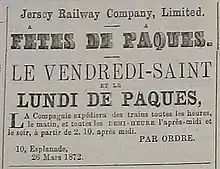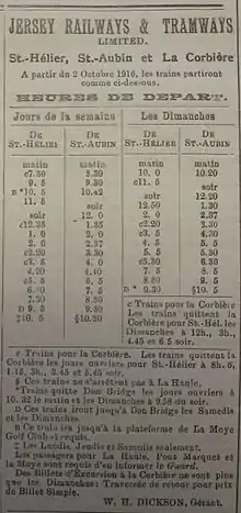 The Jersey Railway was opened in 1870 and was originally a standard gauge railway, 3+3⁄4 miles (6.0 km) long, in Jersey in the Channel Islands. Converted to narrow gauge in 1884 and extended giving a length of 7+3⁄4 miles (12.5 km), the line closed in 1936.